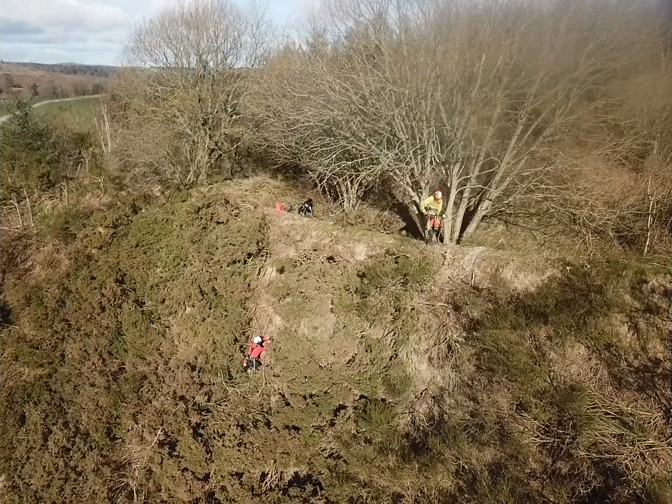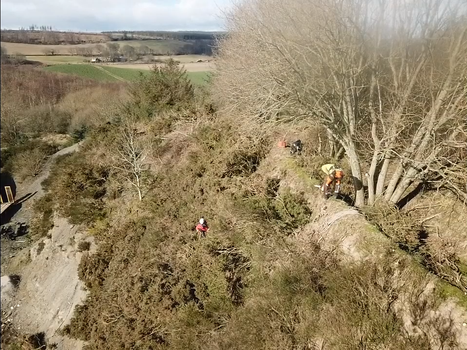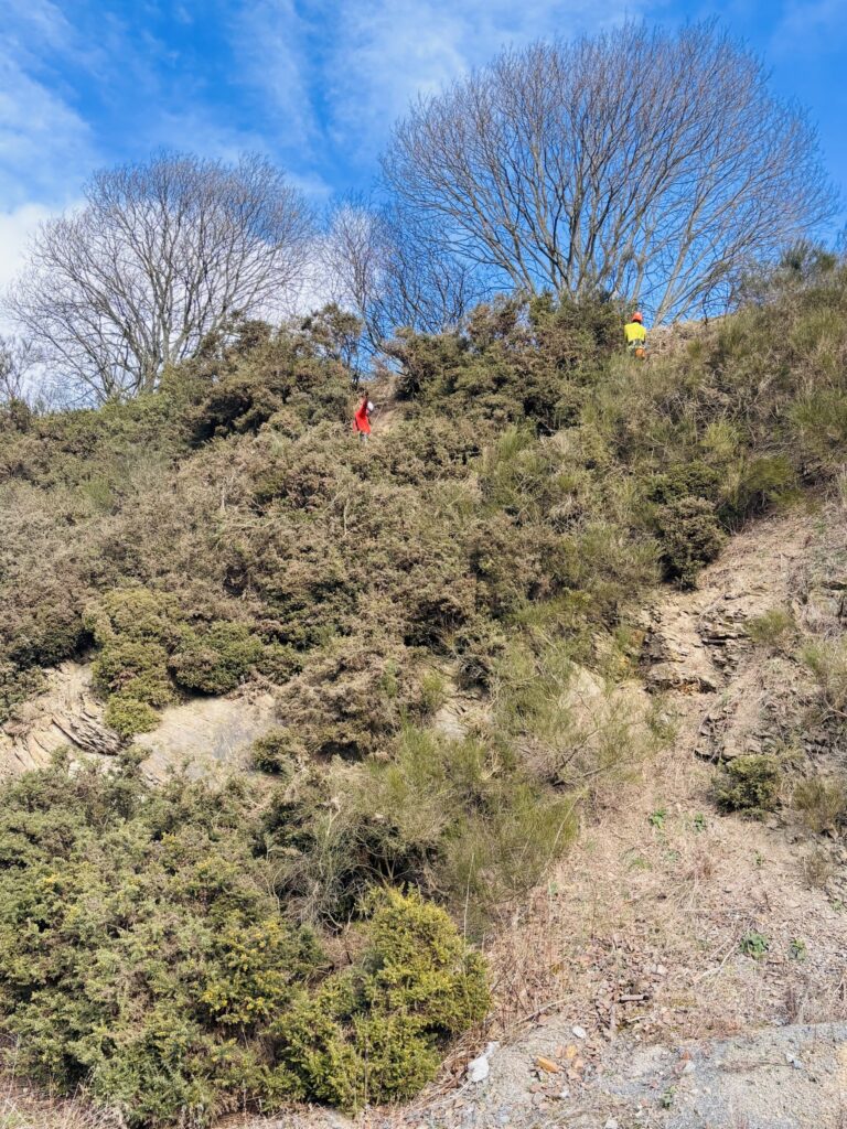 The site was first controlled in 2025 and it was discovered at the time that the infestation was bigger than anticipated. The cliffs are covered in gorse and broom, as well as giant hogweed plants, which can make access even more difficult. It was decided that clearance work would take place ahead of the 2026 control season to make treatment more manageable.