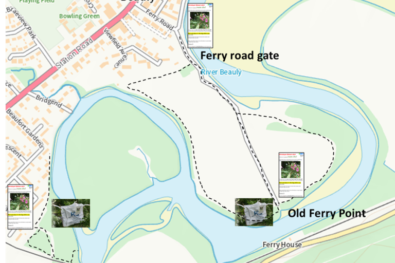 The areas identified for the community project were the riverside footpaths in Beauly around the Old Ferry Point and the Green Bridge (see Figure 1.) This area contained two priority action sites identified for control by the Beauly Fishery Board and, as it runs along the edge of the town, is a popular well-used route.