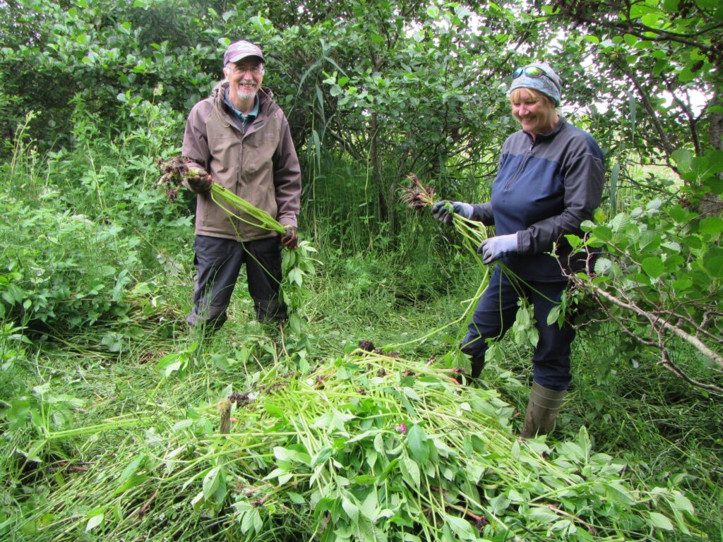 By the end of the 2021 season only a few plants were present in a few areas – mostly persisting in particularly dense bramble stands. The reach of the community had also extended and a small patch of Himalayan balsam two miles outside the village was also removed.