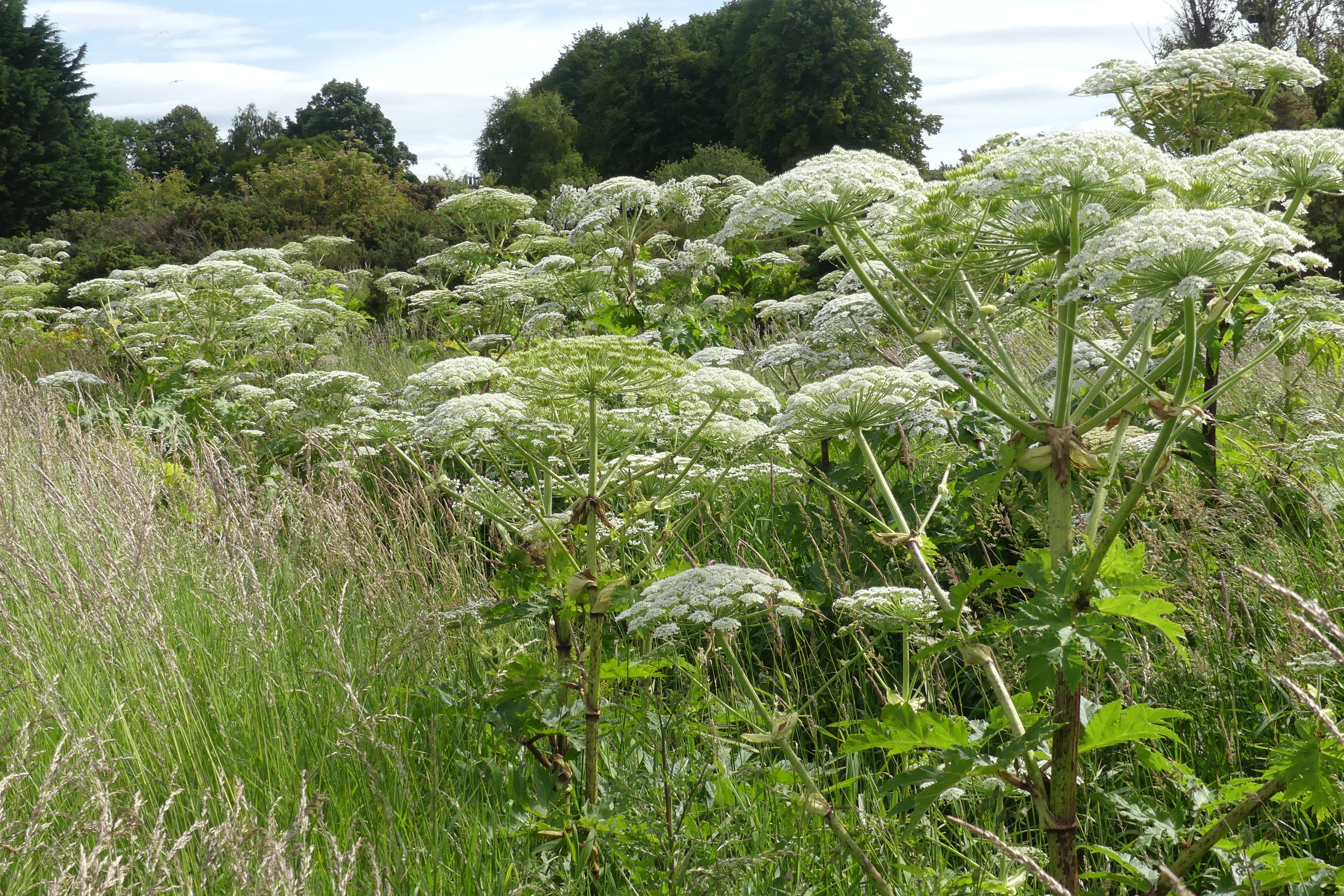 Giant hogweed (Heracleum mantegazzianum) is a non-native invasive plant that has become widely distributed in the UK. It is especially abundant along watercourses but is also commonly found in rough pastures and wasteland.
