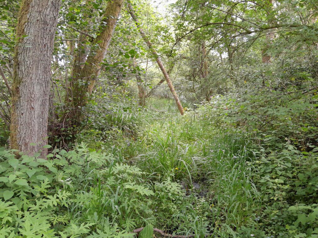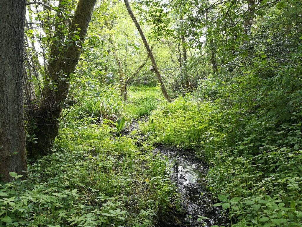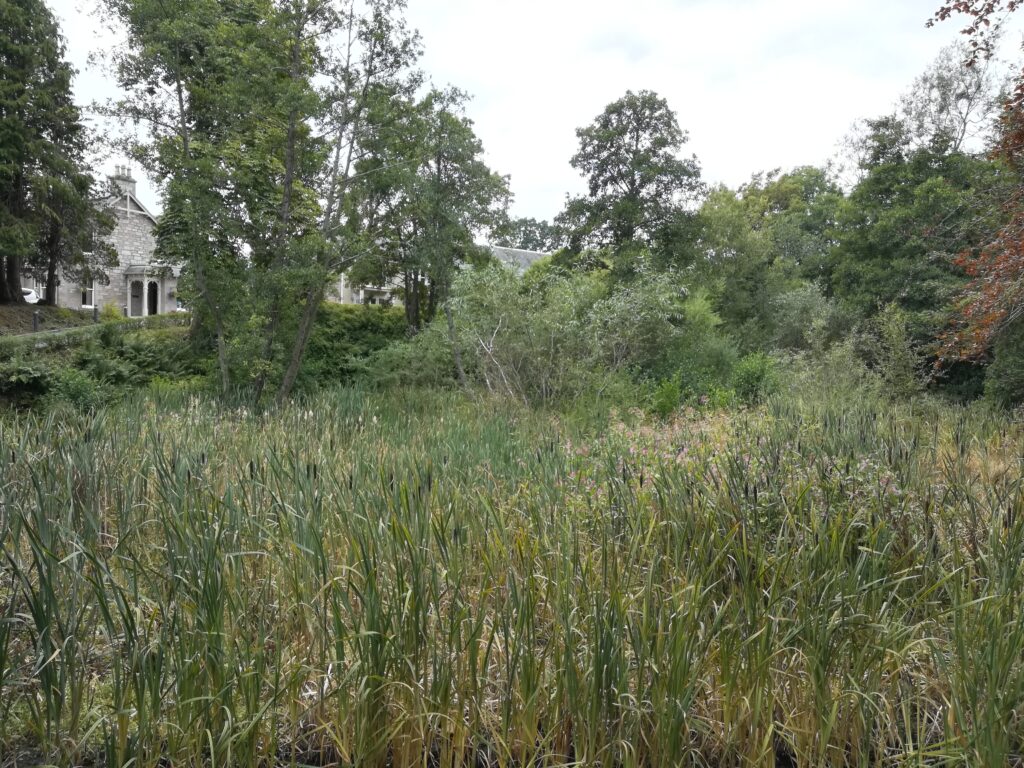 Skunk cabbage infestations on the Moulin Burn were already beginning to restrict water flow – locally increasing flood risk – and outcompeting native species present, particularly in the pond area.